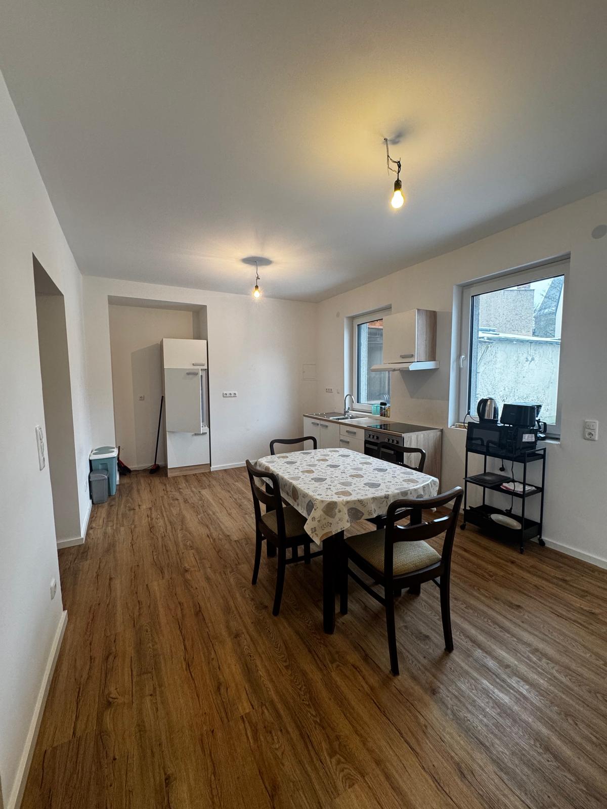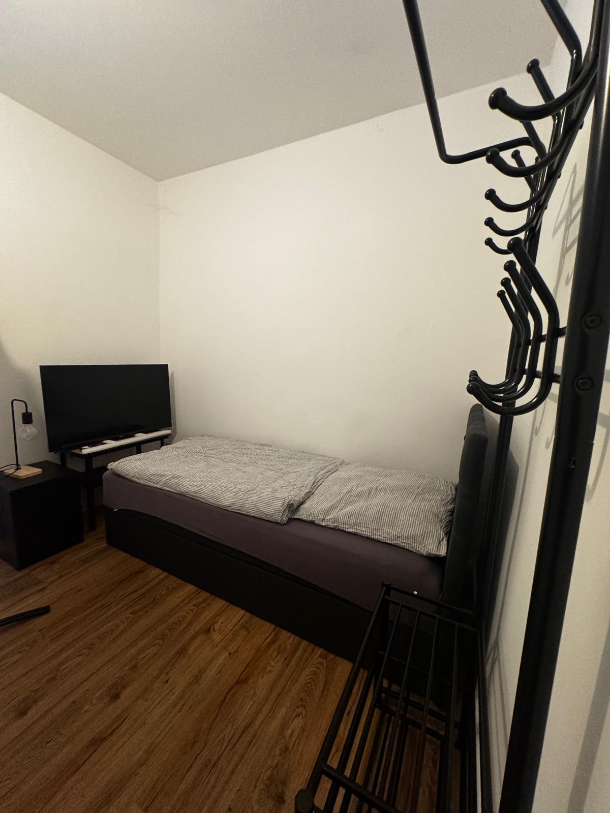 - Zimmer mit Bett (90x200) incl. Bettwäsche,Regal, Internet bis zu 400mbit, TV, Tisch und Stühlen, Kleiderschrank, Kühlschrank