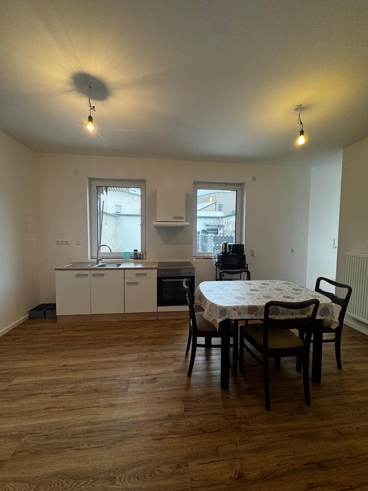 - Küche mit Herd, Mikrowelle, Küchenutensilien...