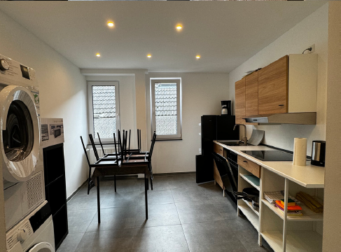- Zimmer mit Bett (90x200) incl. Bettwäsche,Regal, Internet bis zu 400mbit, TV, Tisch und Stühlen, Kleiderschrank, Kühlschrank