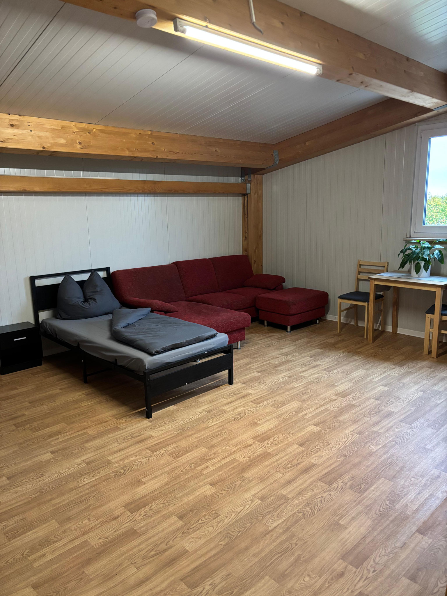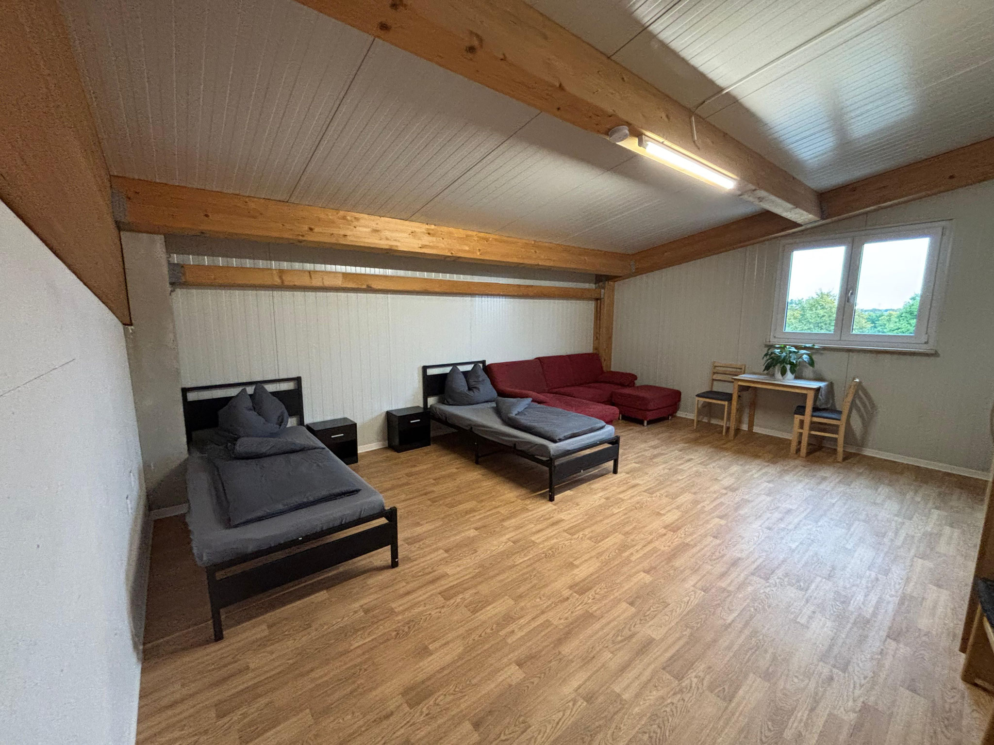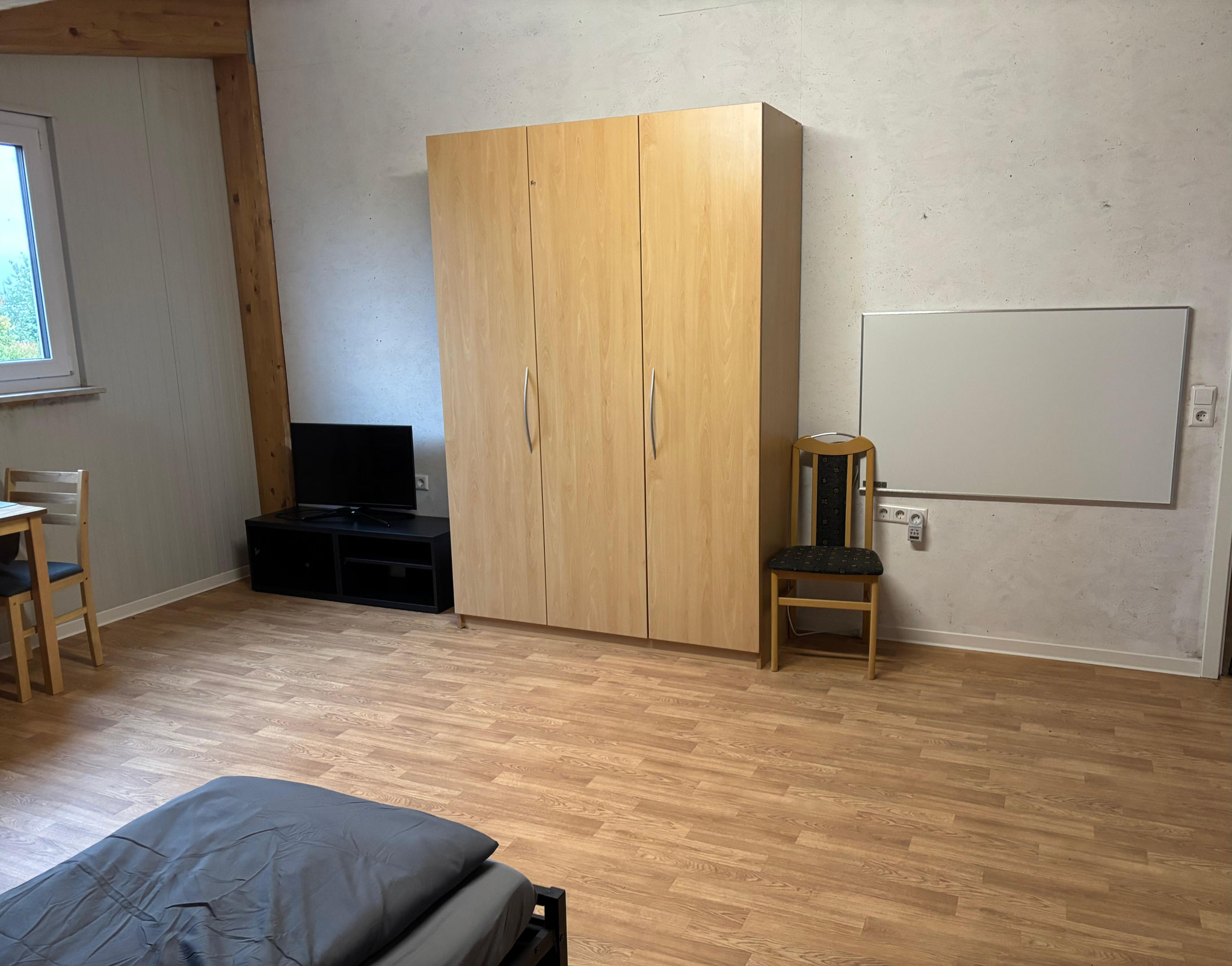 - Zimmer mit Bett (90x200) incl. Bettwäsche, Nachtkästchen, Internet bis zu 400mbit, Tisch und Stühlen,