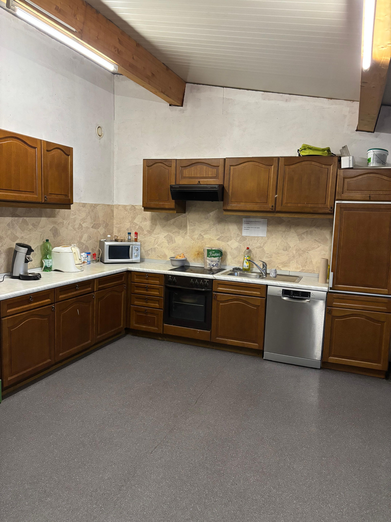 - Küche mit Herd, Microwelle, Kühlschrank, ...