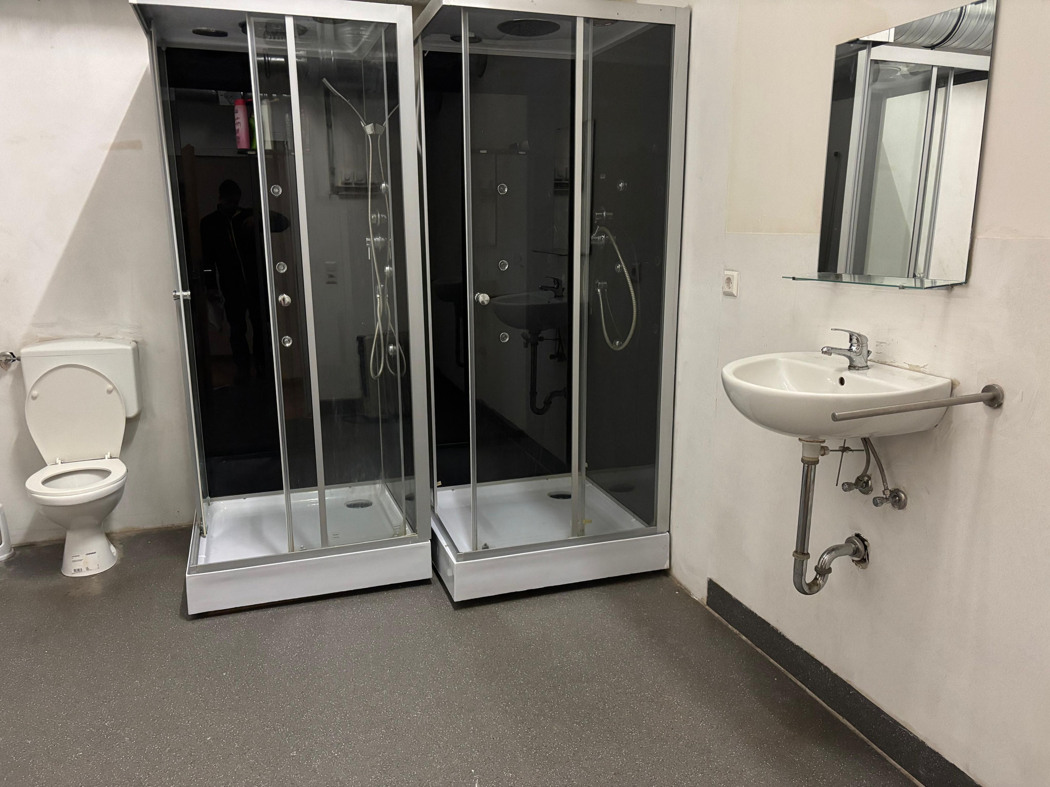 - Bad mit Dusche/Badewanne, Toilette und Waschbecken