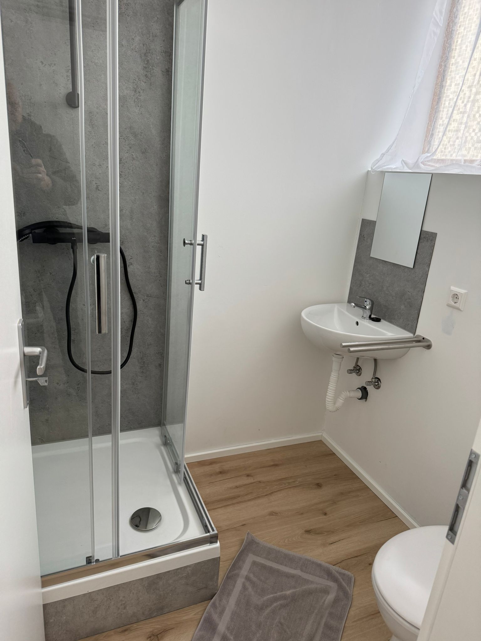 - Bad mit Dusche, Toilette und Waschbecken