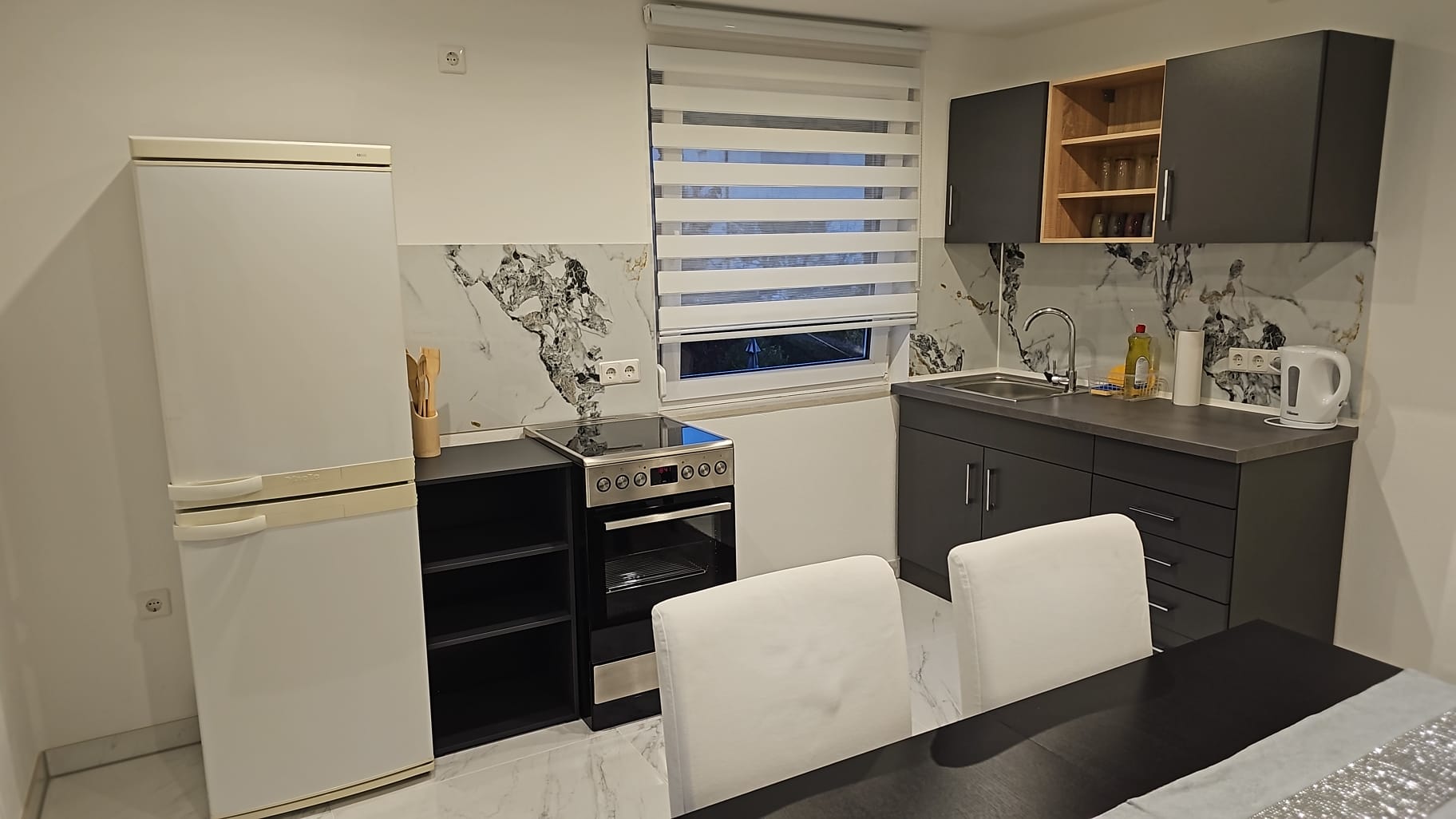 - Zimmer mit Bett incl. Bettwäsche, Nachtkästchen, Internet bis zu 400mbit, TV, Tisch und Stühlen.
