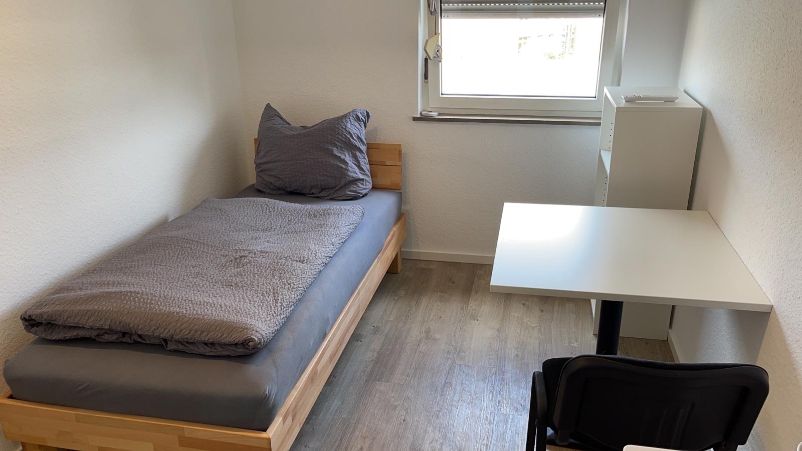 - Zimmer mit Bett (90x200) incl. Bettwäsche, Nachtkästchen, Internet bis zu 400mbit, TV, Tisch und Stühlen, sowie einem kleinen Kühlschrank