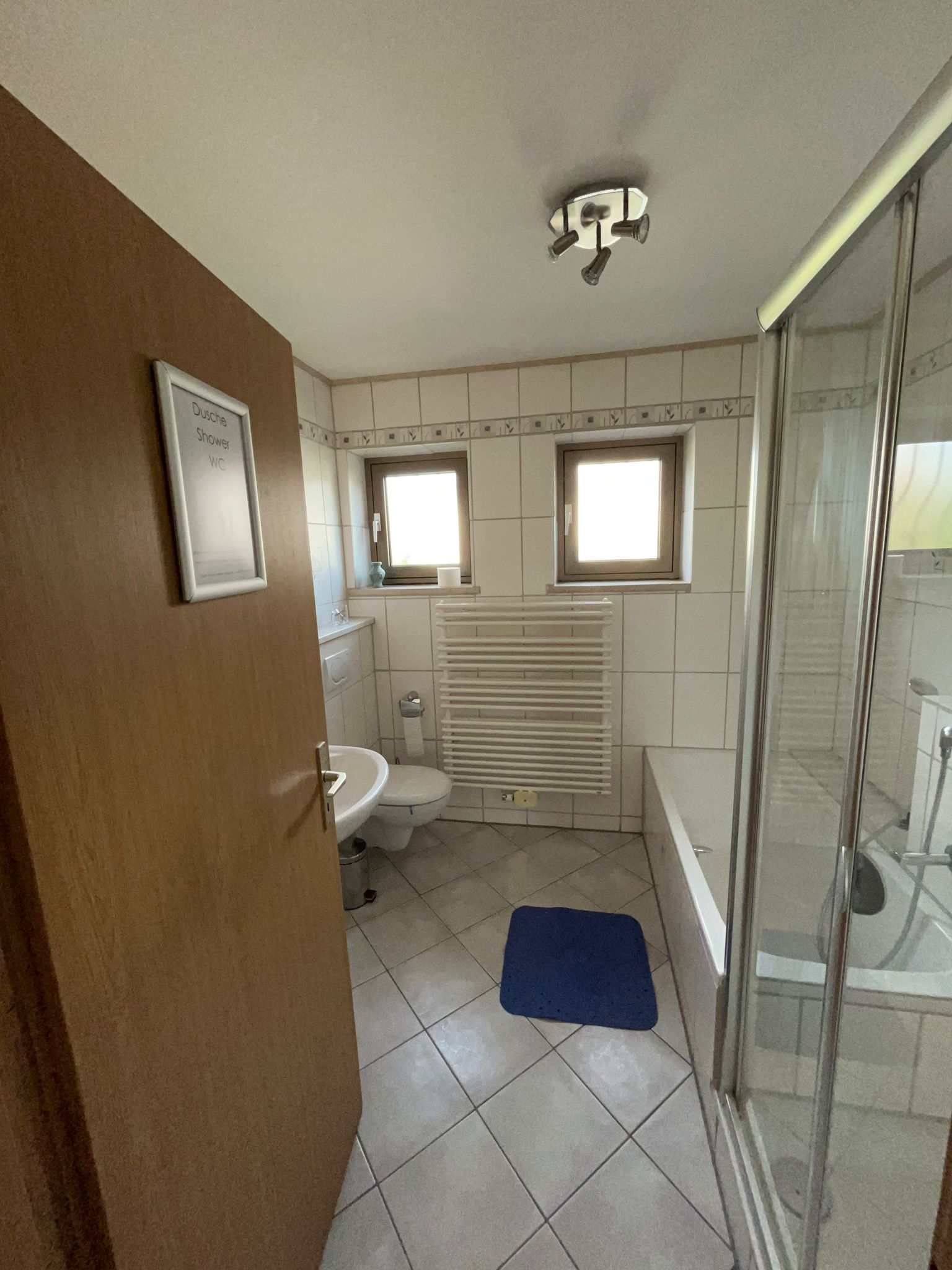 - Bad mit Dusche/Badewanne, Toilette und Waschbecken