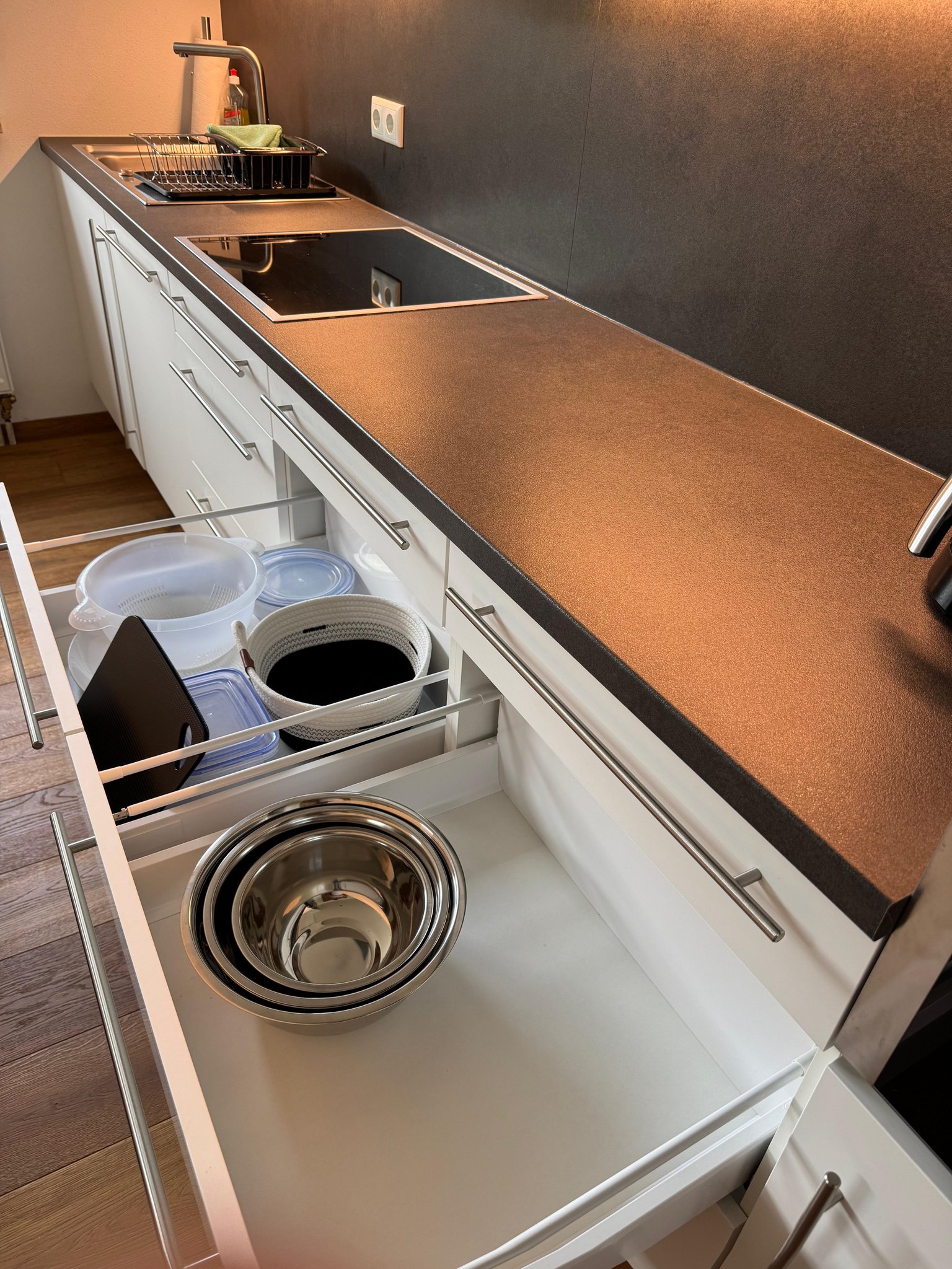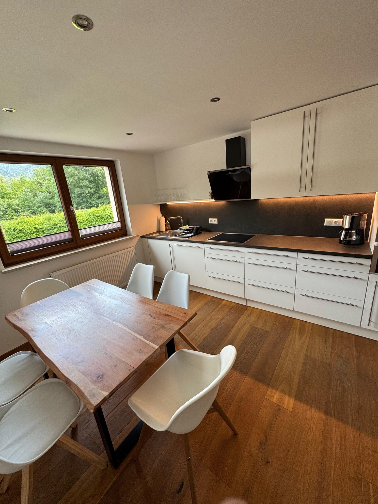 Küche (komplett ausgestattet), Bad (Hand-/Duschtücher), WC, Waschmaschine (incl. Waschmittel, Weichspüler) /Trockner, große Garage, Wiese ca. 300 m2 zum Spielen, Grillen (Weber Grill, Holzkohle, Anzünder; Biergarnitur)