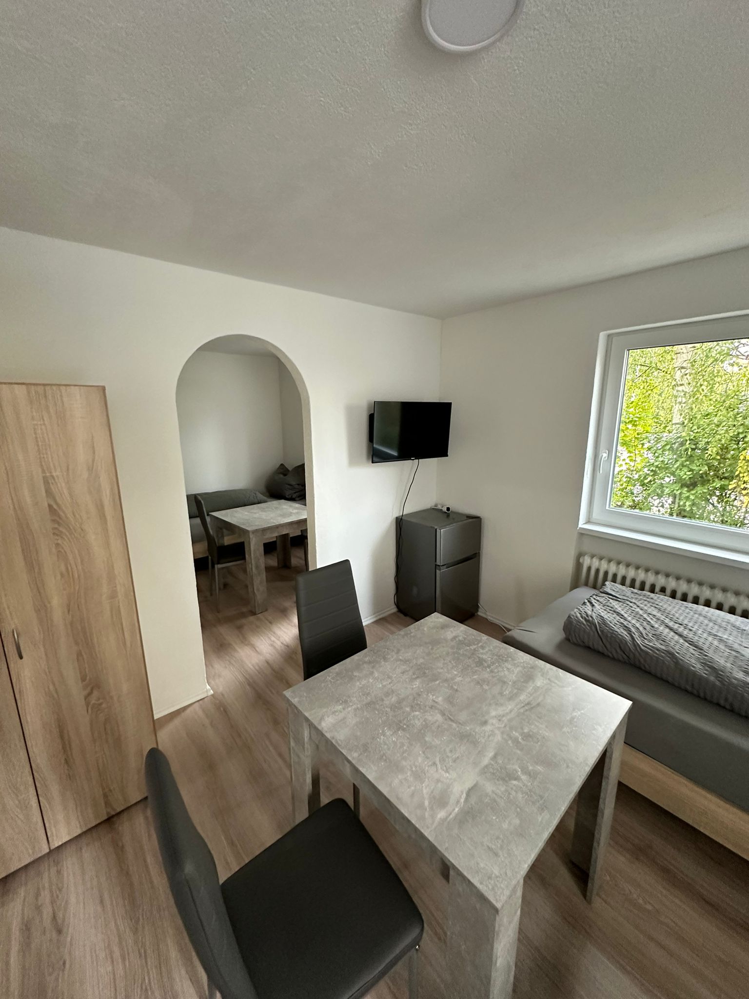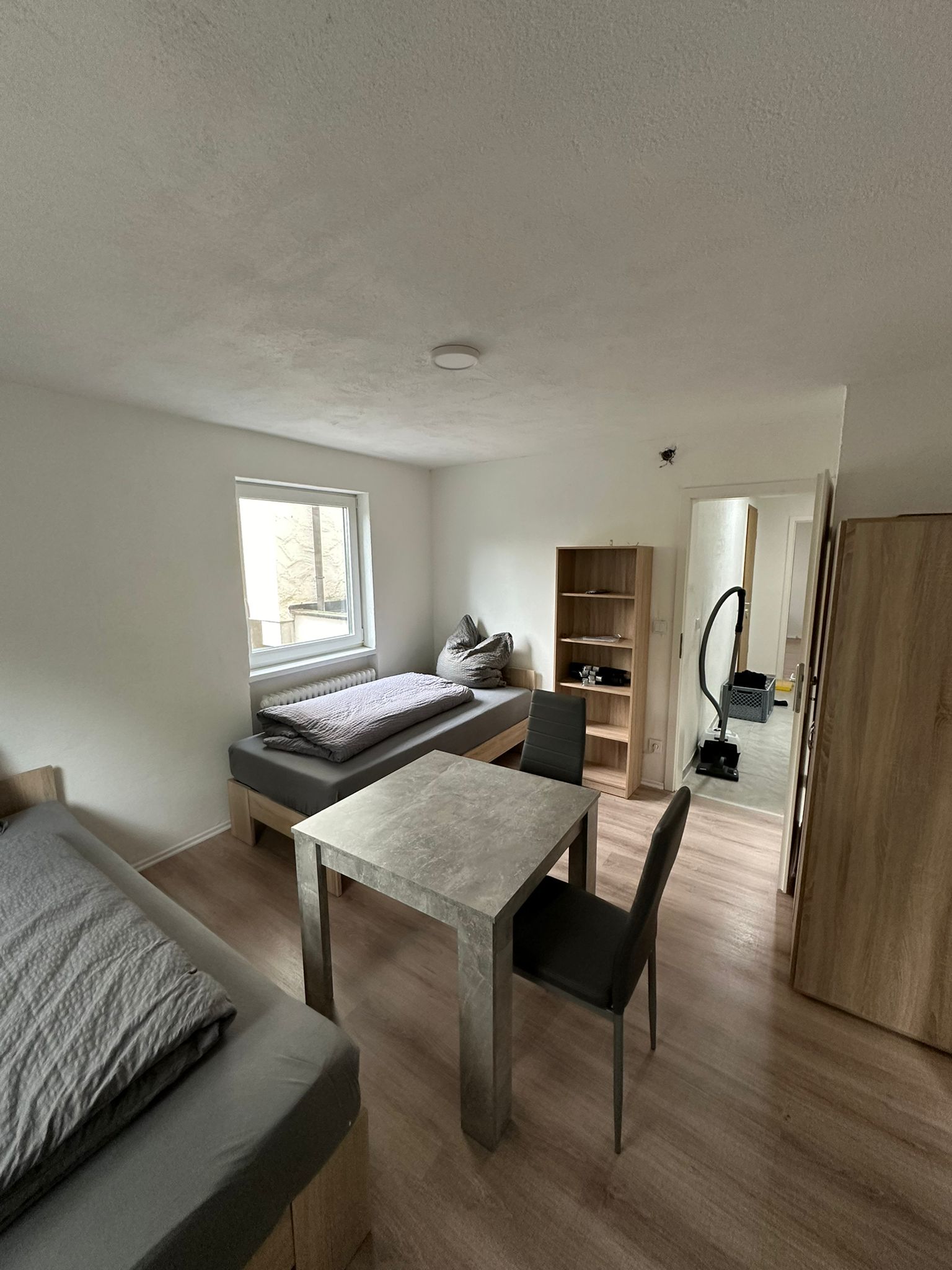 - Zimmer mit Bett (90x200) incl. Bettwäsche, Nachtkästchen, Internet bis zu 400mbit, TV, Tisch und Stühlen, kleinem Kühlschrank und Mikrowelle