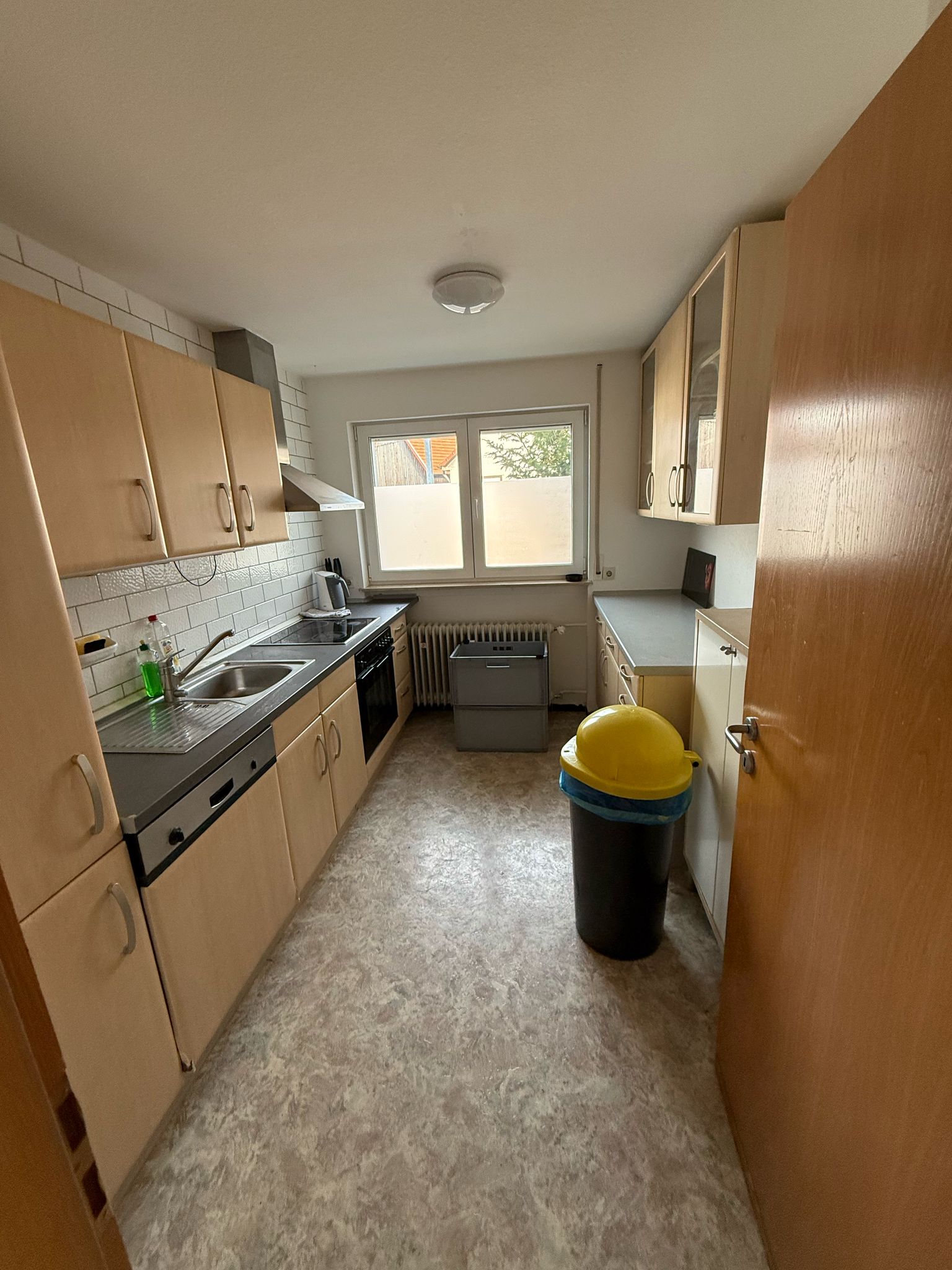- Küche mit Spülmaschine, Kühl-/Gefrierschrank, Töpfen, Pfannen, Tellern, Besteck etc.