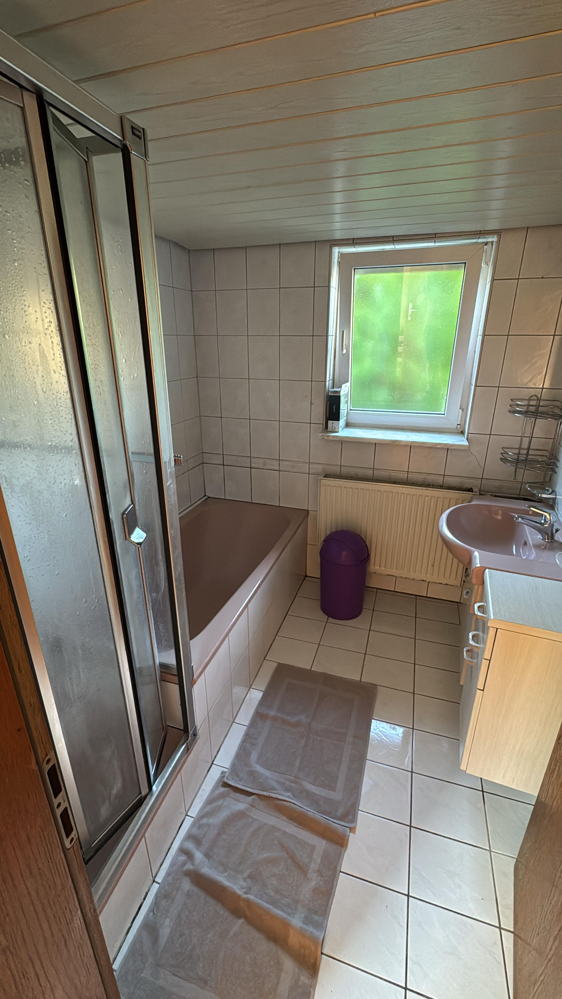 - Bad mit Dusche/Badewanne, Toilette und Waschbecken