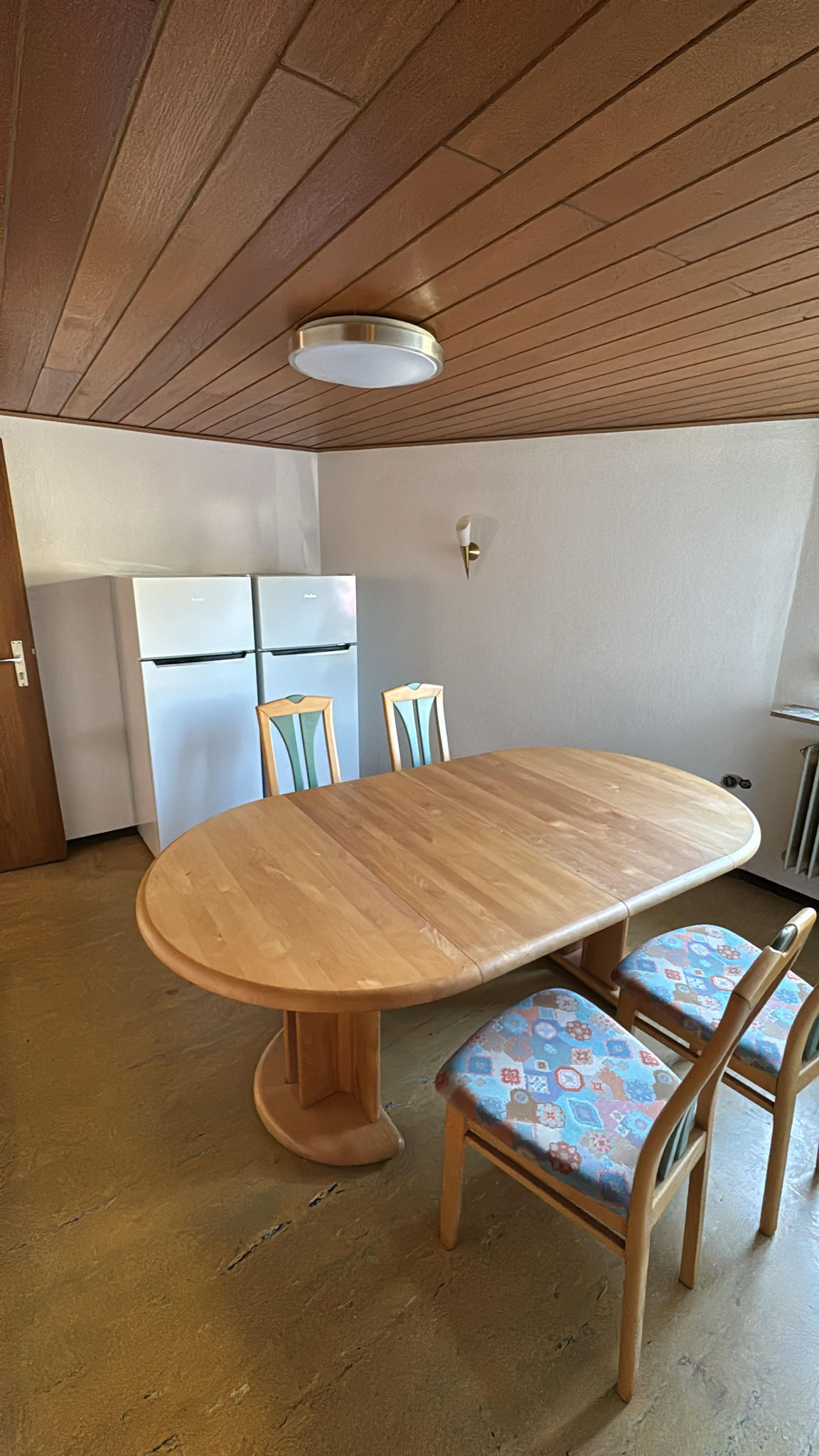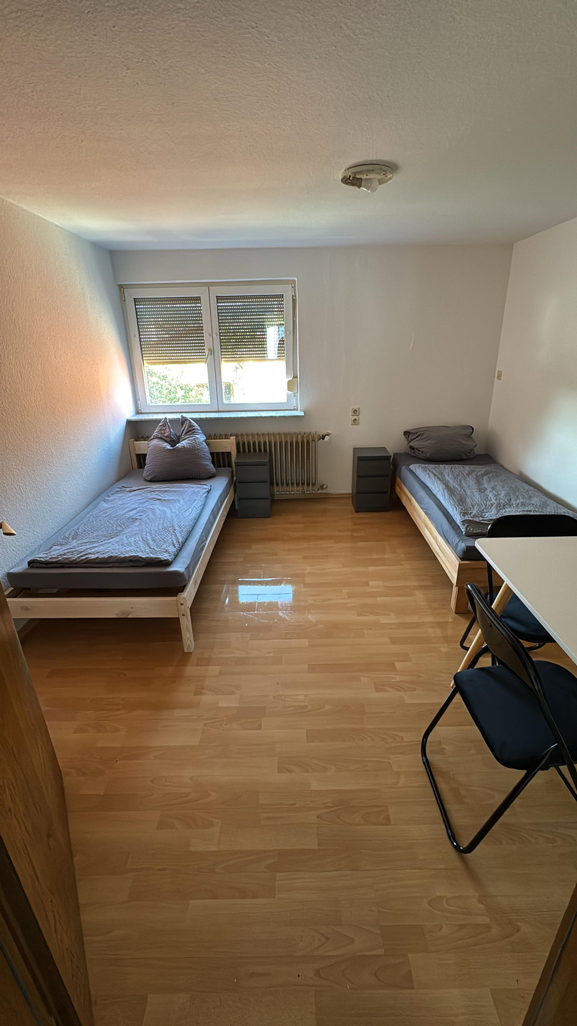 - Zimmer mit Bett (90x200) incl. Bettwäsche, Nachtkästchen, Internet bis zu 400mbit, TV, Tisch und Stühlen, sowie einem kleinen Kühlschrank