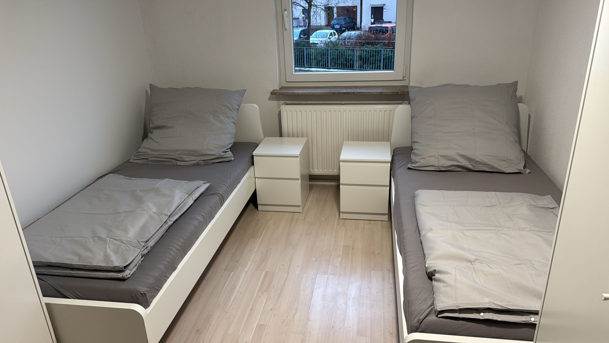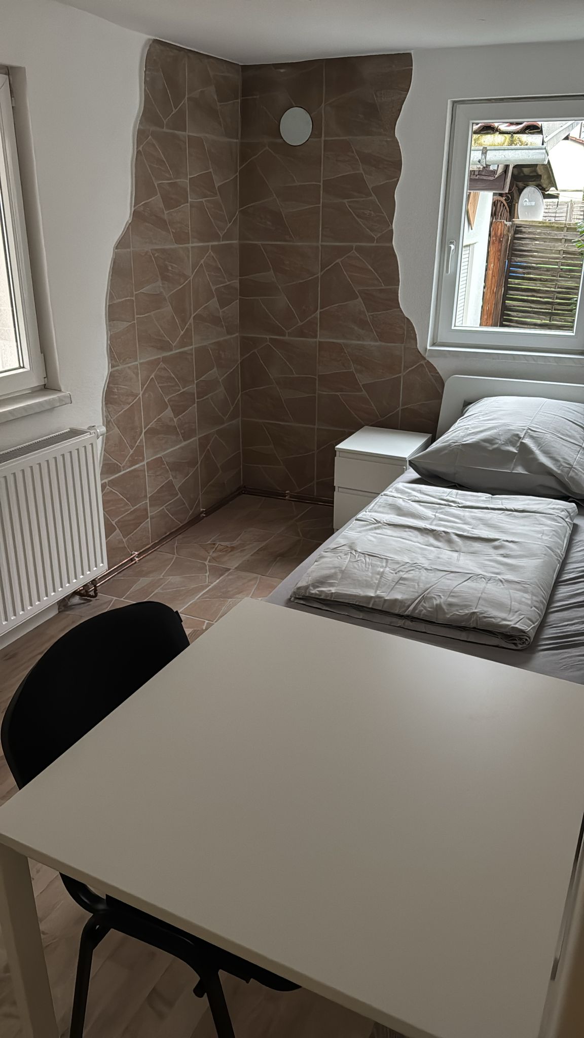 - Zimmer mit Bett (90x200) incl. Bettwäsche, Nachtkästchen, Internet bis zu 400mbit, TV, Tisch und Stühlen, sowie einem kleinen Kühlschrank